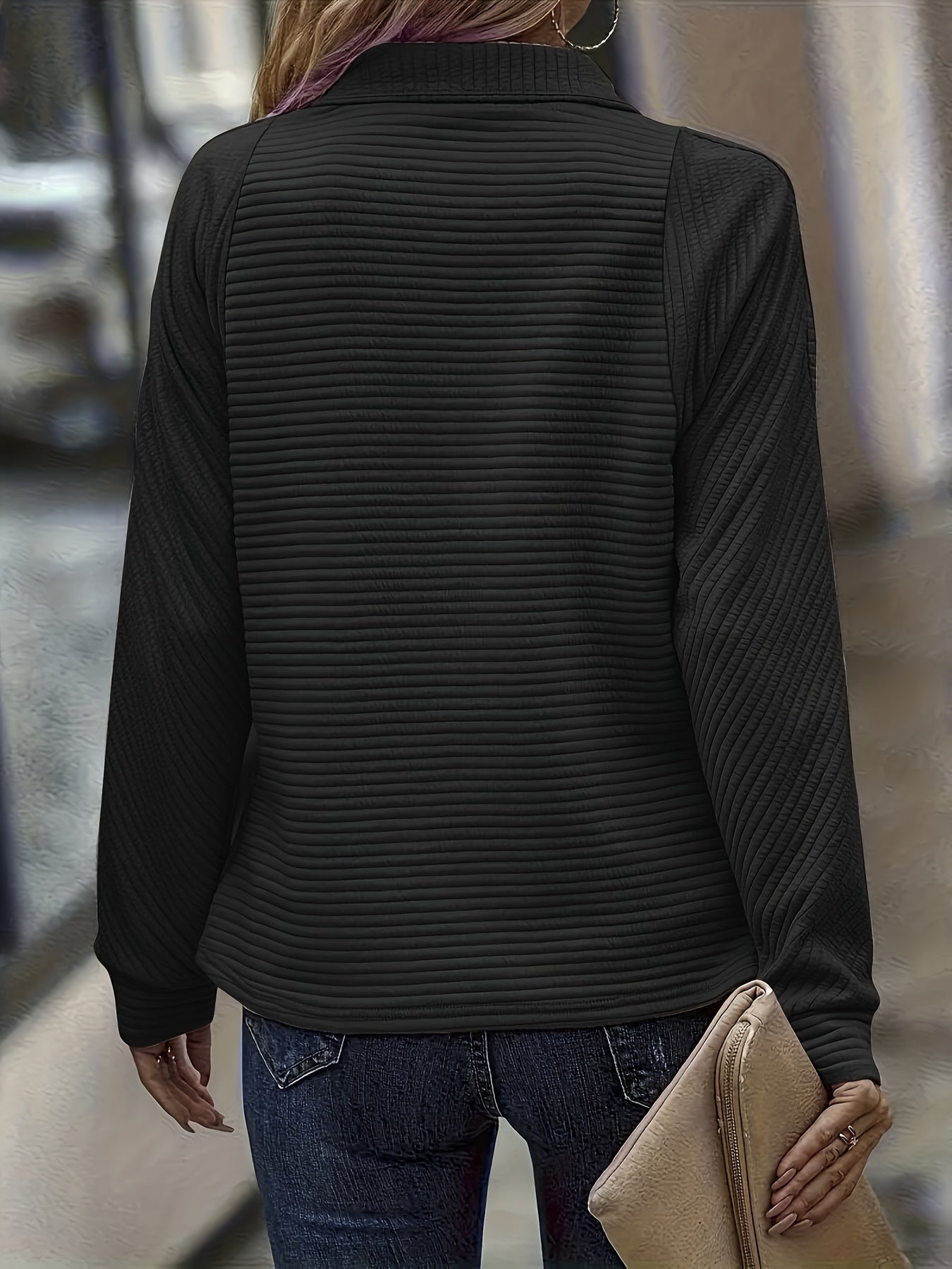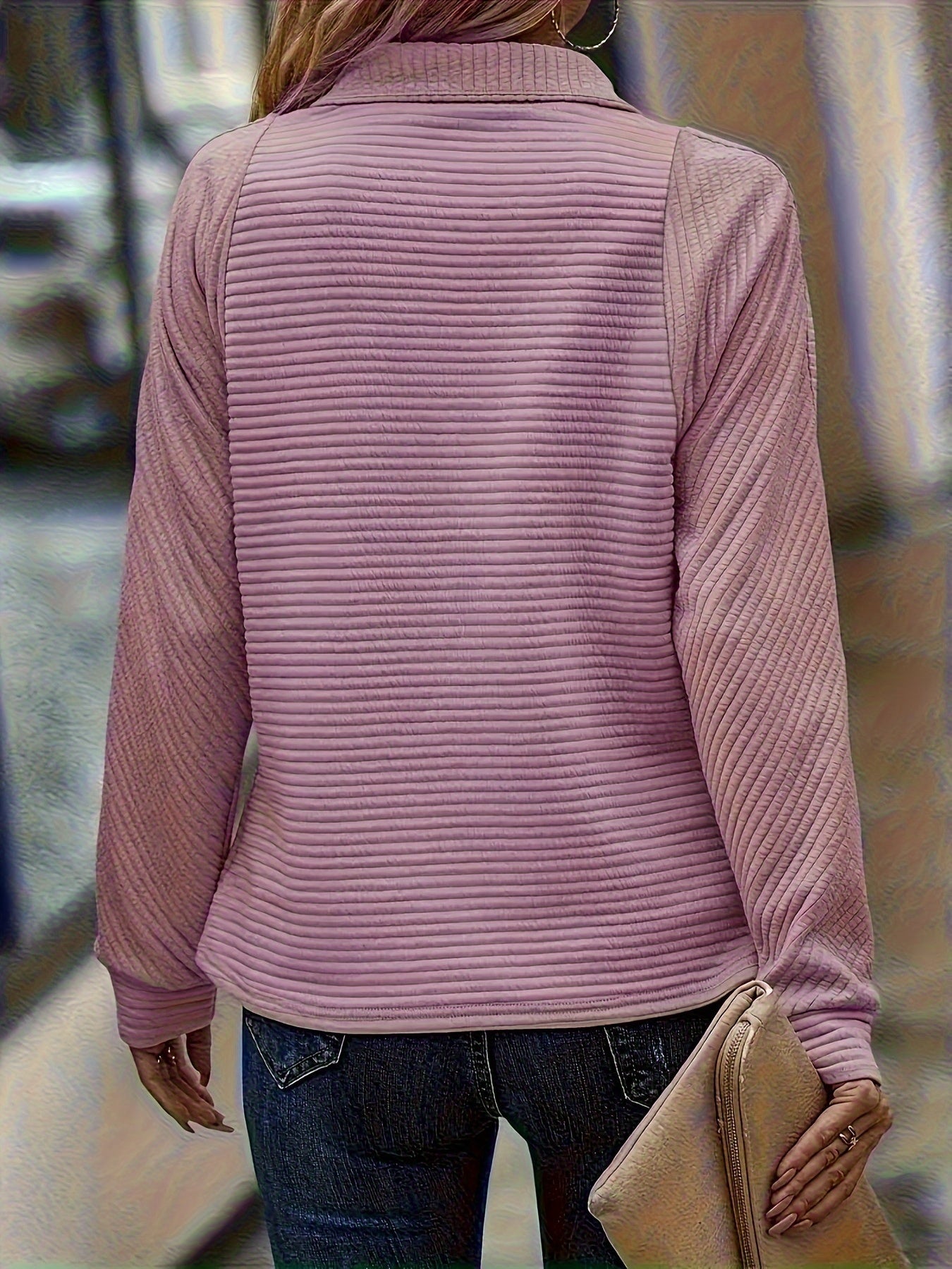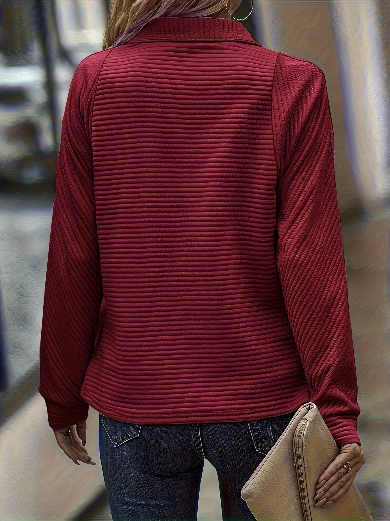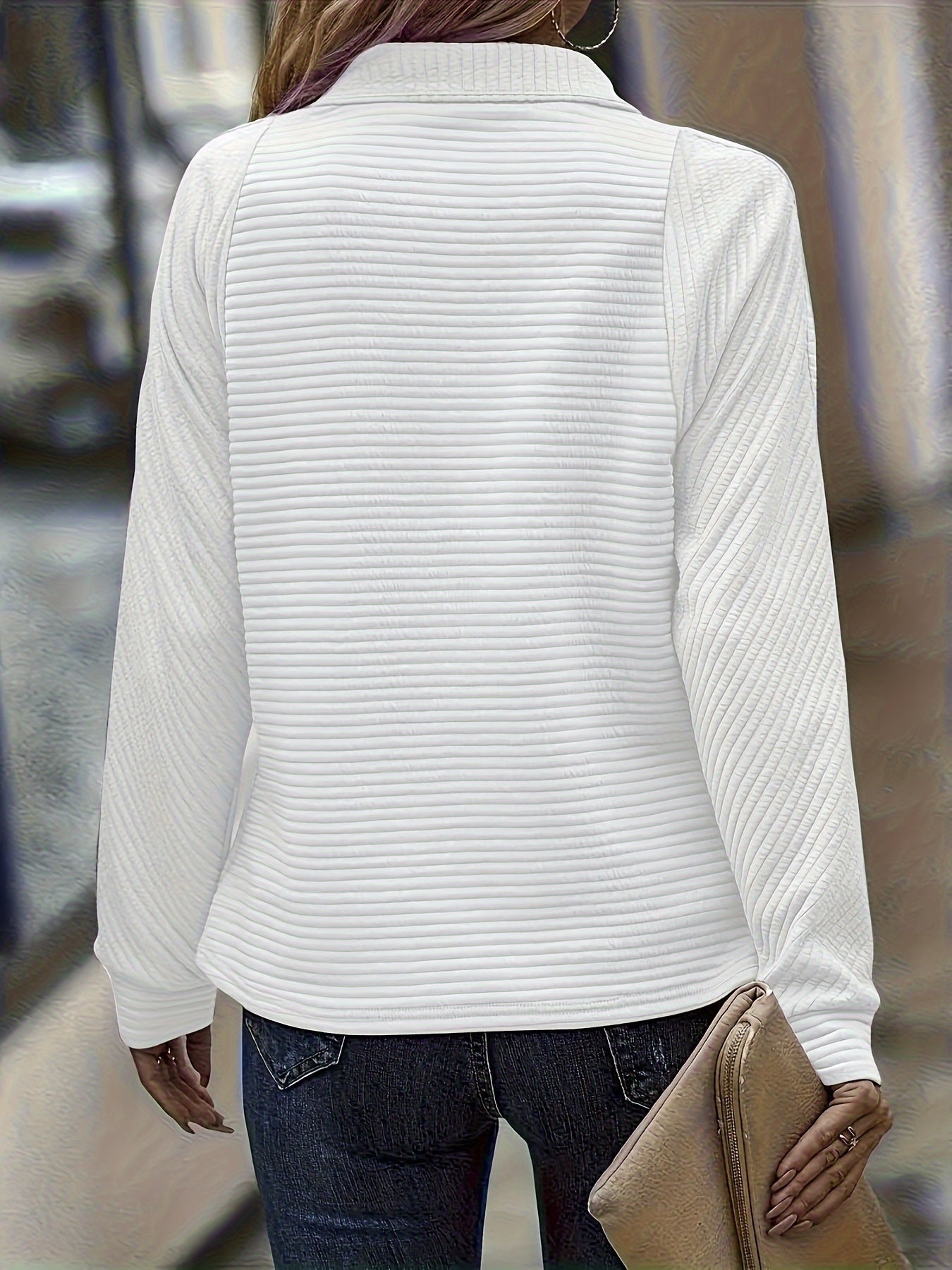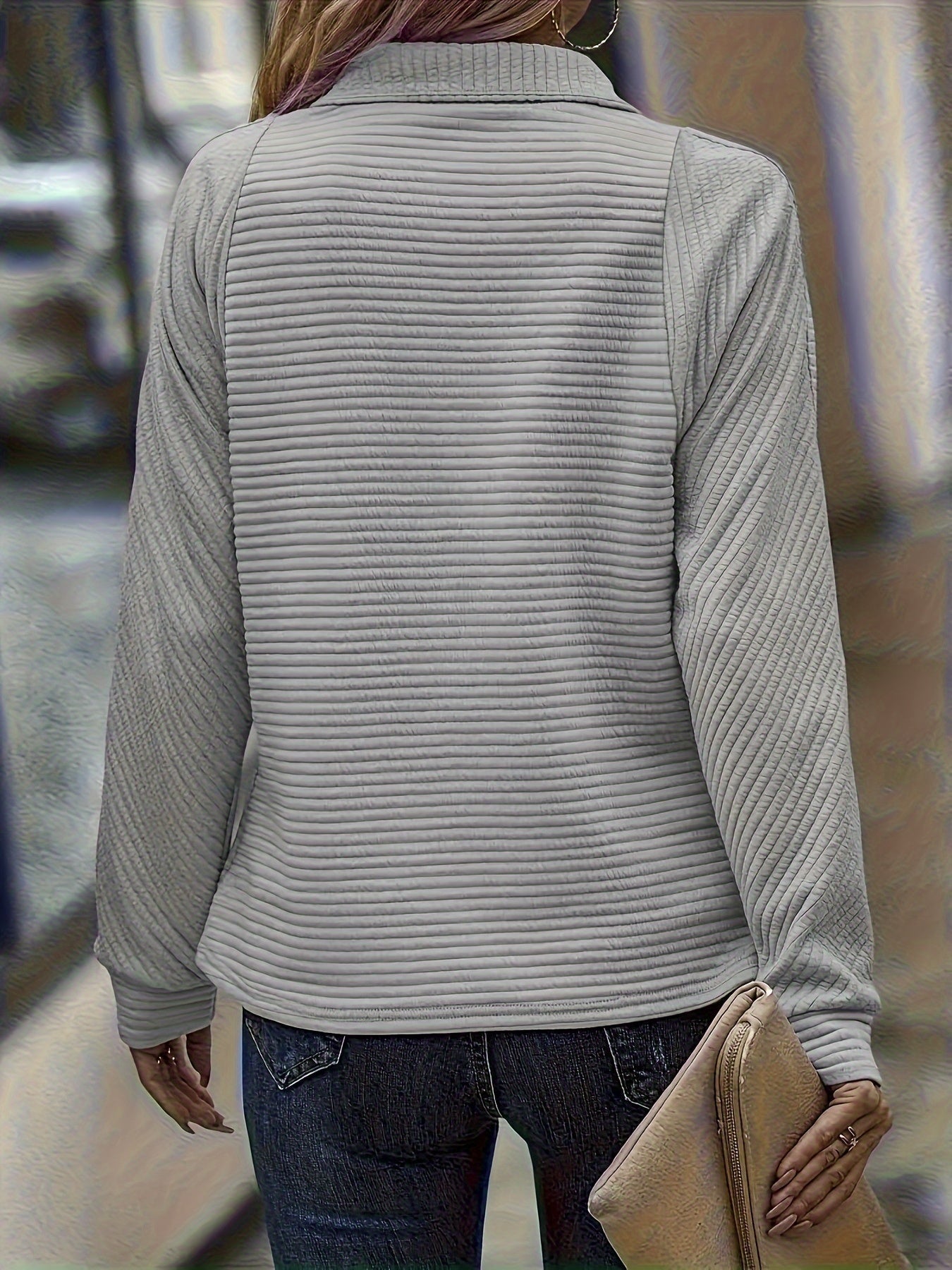 ✅Flattering Relaxed Structure: Crafted to drape smoothly while allowing free movement throughout the day. The ribbed texture adds depth without feeling heavy. Long sleeves provide balanced coverage in changing weather. A reliable option for extended wear during busy schedules.